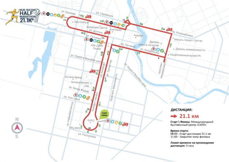 Старт полумарафона в Нур-Султане будет дан на территории международного выставочного центра EXPO. Трасса официально сертифицирована Ассоциацией международных марафонов и пробегов.