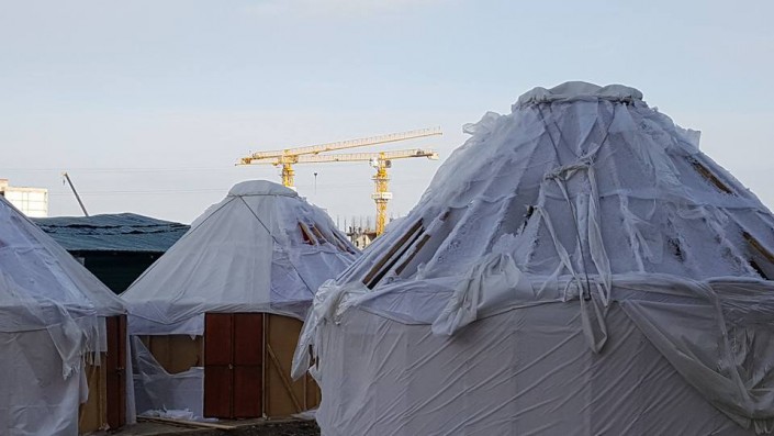 Жителей Астаны удивило строительство городка из юрт в одном из районов столицы, передает корреспондент Tengrinews.kz.