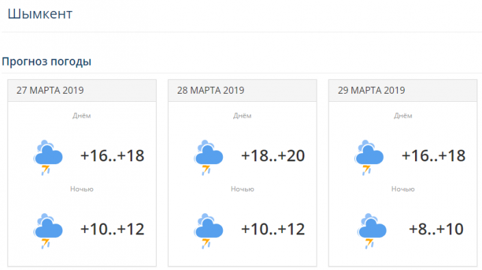 В Шымкенте ожидаются дожди с грозами. 27 марта 16-18 градусов тепла, 28 марта 18-20, 29-го температура воздуха снова понизится до 16-18 градусов со знаком плюс.