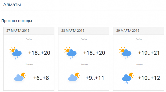 В Алматы 27-28 марта синоптики прогнозируют 18-20 градусов тепла, 29 марта 19-21 градус. Возможны дожди.