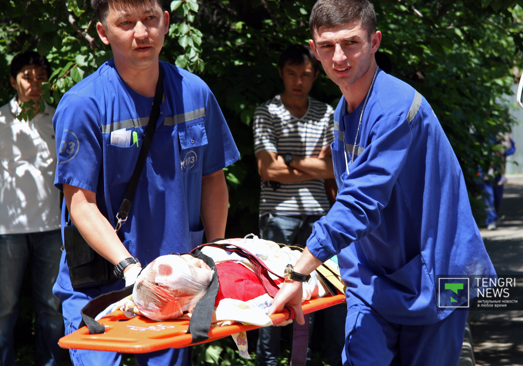 Двое из пострадавших детей находятся в реанимации в детской городской больнице №1. По словам заместителя руководителя управления Багдагуль Адбрасиловой, вызов на пульт скорой медицинской помощи поступил примерно в полдень. На место происшествия выехали три бригады скорой помощи. Восемь детей были сразу же доставлены в детскую больницу. Позже был доставлен еще один ребенок. Таким образом, число пострадавших возросло до девяти.