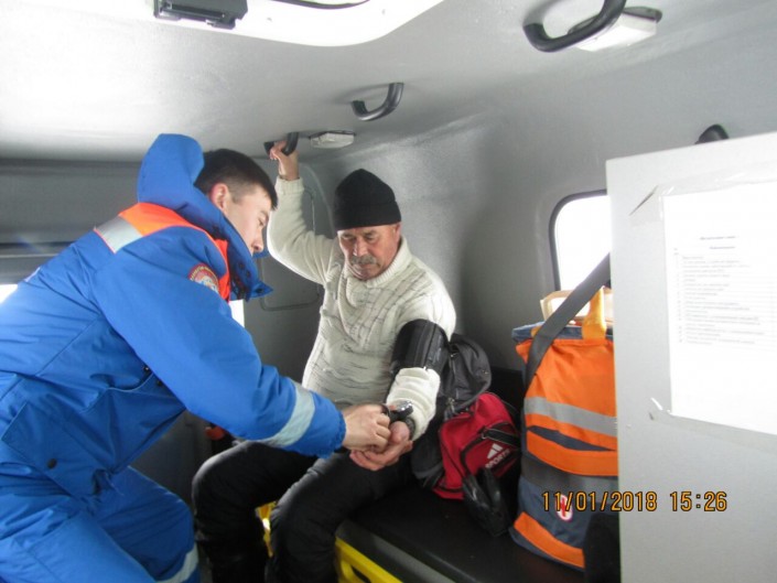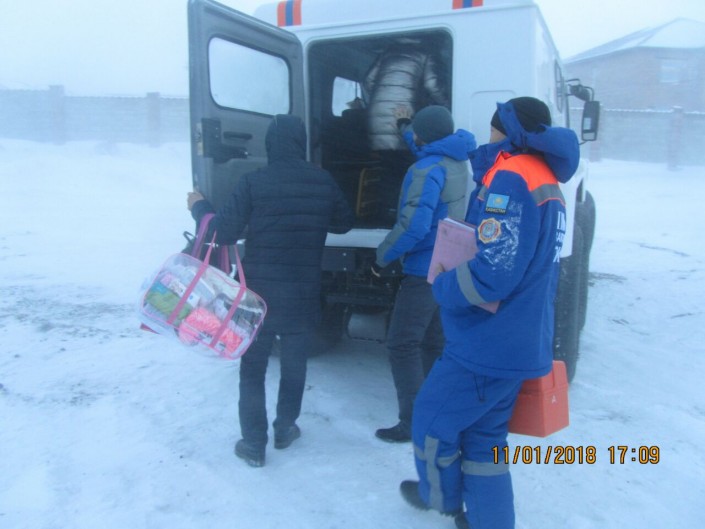 В это же время поступила информация о том, что на 42-м разъезде Аршалинской трассы на посту охраны замерзает человек. После прибытия и осмотра медиками бригады он был эвакуирован в пункт обогрева (пост ГАИ).