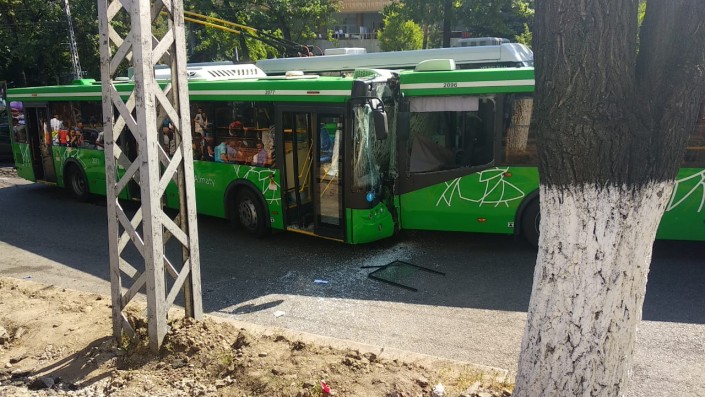 Два автобуса столкнулись лоб в лоб в Алматы