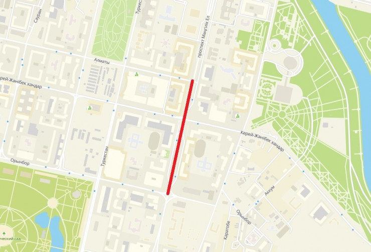 С 8 по 12 августа полностью перекроют проспект на участке от улицы Орынбор до улицы Бухар жырау.