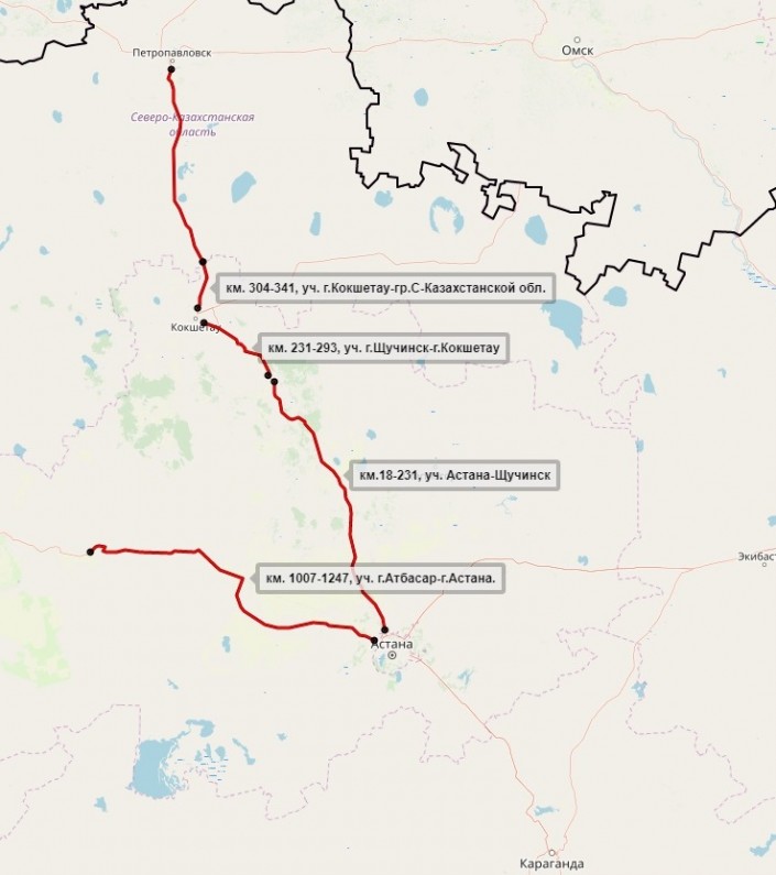 Согласно данным "Казахавтодор", также закрыты автодороги Щучинск - Кокшетау и Кокшетау - Петропавловск.