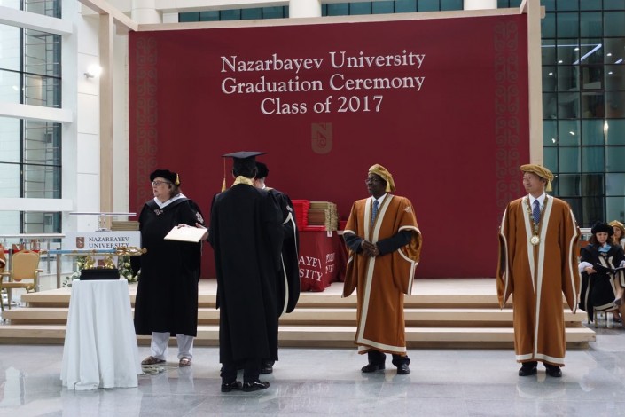 Отметим, церемония поздравления выпускников вуза началась на площадке под открытым небом на территории Назарбаев Университета. Но из-за проливного дождя, который долгое время не прекращался, церемонию вручения дипломов перенесли в задние университета.