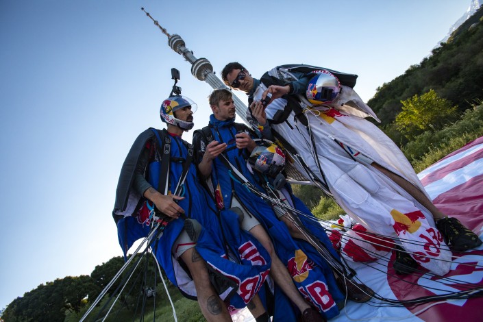 Атлеты международной команды по воздушной акробатике Red Bull Skydive Team осуществили успешный полет на вингсьютах (с английского wingsuit  - "костюм-крыло" - прим. автора) над Алматы, обогнув телевышку на Кок-Тобе, передает Tengrinews.kz.