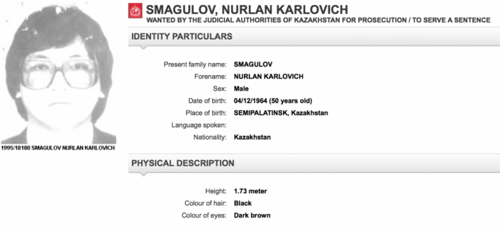 Нұрлан Смағұловтың суреті Интерпол сайтында