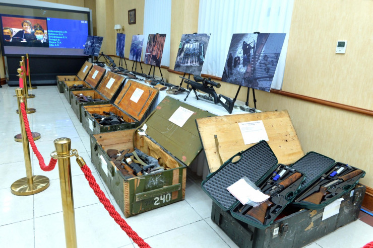 Перед началом пленарного заседания была организована выставка с оружием, обнаруженным в ходе следствия. Это автоматы, снайперские винтовки, гранатометы, охотничьи ружья, пистолеты, обрезы и многое другое. Также было представлено полицейское обмундирование: щиты, каски, бронежилеты, пострадавшее в ходе беспорядков в январе прошлого года.
