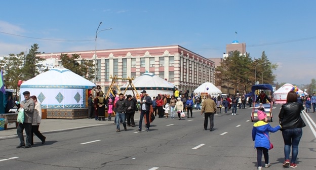 Каждый район и крупное предприятие Павлодарской области установили на центральной площади свою юрту. Прохожих завлекали цирковые артисты, батыры и красавицы в национальных костюмах, каждый желающий мог попробовать свои силы в спортивных состязаниях.