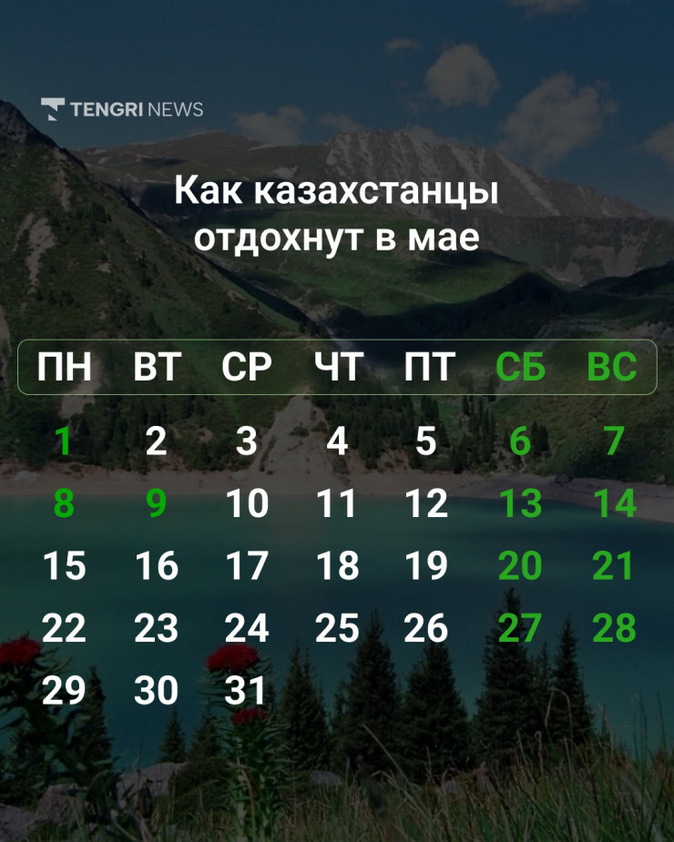 Напомним, в мае казахстанцы отметят три больших праздника: День единства народа Казахстана 1 мая, 7 мая - День защитника Отечества и 9 мая - День Победы.