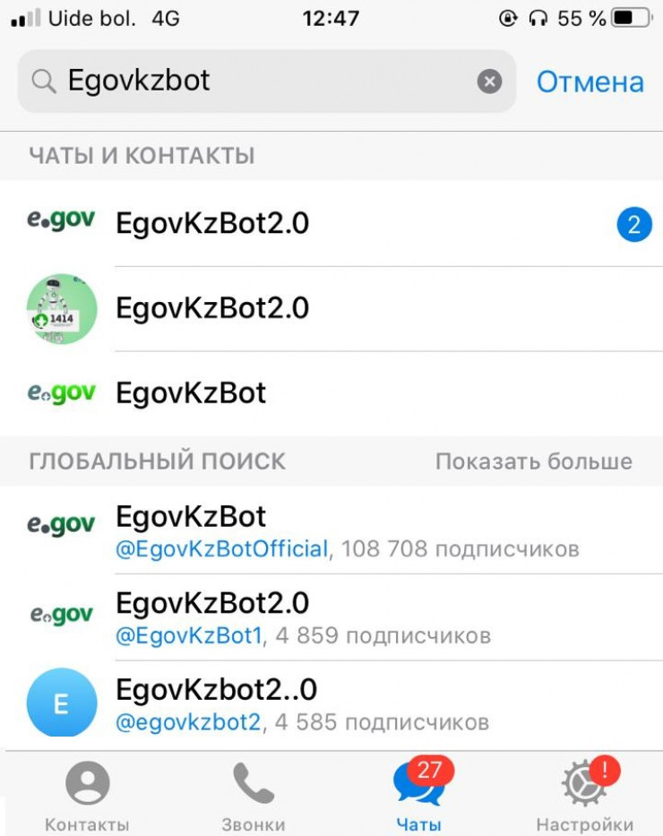 Новые Telegram-боты якобы предлагают ту же услугу, что и настоящий аккаунт. Ежеминутно количество подписчиков на фейковых страницах увеличивается. Однако настоящий бот - это @Kenes1414Bot (EgovKzBot2.0).