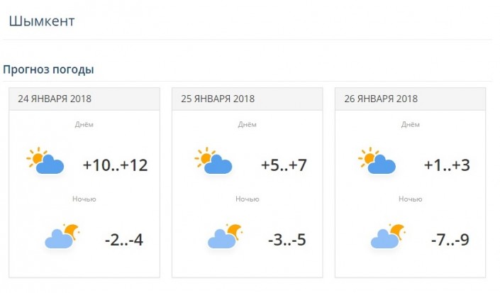Так, согласно данным на сайте РГП "Казгидромет", 24 января в Шымкенте зафиксировано днем +10...+12 градусов. 25 января станет немного холоднее - дневная температура воздуха составит +5...+7 градусов. Уже 26 января столбики термометров опустятся до -1...-3 градусов.