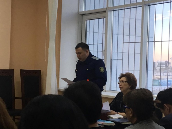 "Полагаю признать Мухитову Малику Кайратовну виновной в совершении уголовного правонарушения, предусмотренного частью 3 статьи 345 УК ("Нарушение ПДД лицами, управляющими транспортными средствами, повлекшее смерть человека"), и назначить ей наказание в виде лишения свободы на два года с лишением права управлять транспортными средствами на три года. Отбывание наказания Мухитовой следует назначить в учреждении уголовно-исполнительной системы минимальной безопасности как лица, осужденного за преступление, совершенное по неосторожности", - сообщил на прениях прокурор Алишер Бараев.