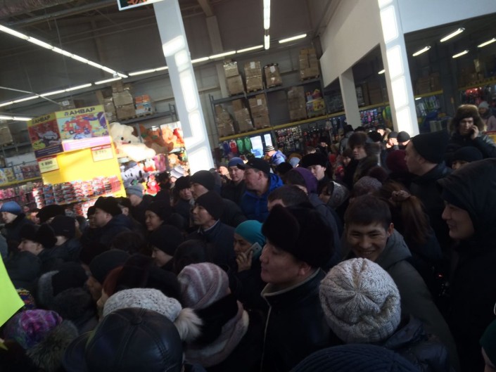 В субботу, 14 января, в одном из центров торговой сети "Анвар" в Актобе произошел скандал из-за новогоднего розыгрыша автомобиля Toyota Camry и других ценных призов. Фото и видео с места инцидента появились на странице aktobe_zello в Instagram.