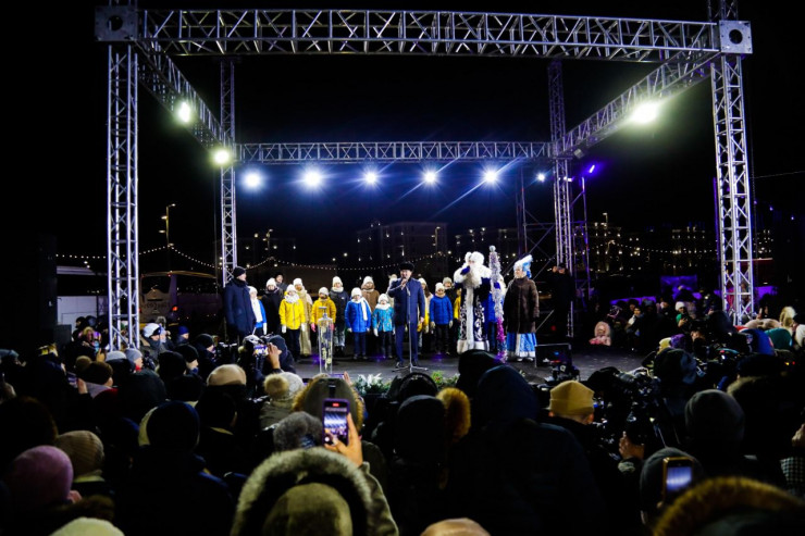 Зажигали главную елку страны юные астанчане, аким столицы Женис Касымбек, Дед Мороз и Снегурочка, на сцене также выступили казахстанские артисты.