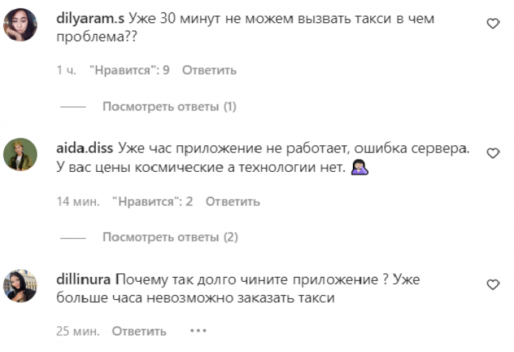 Пользователи сервиса пожаловались на проблемы с вызовом такси в редакцию Tengrinews.kz, а также активно пишут комментарии в соцсетях компании.