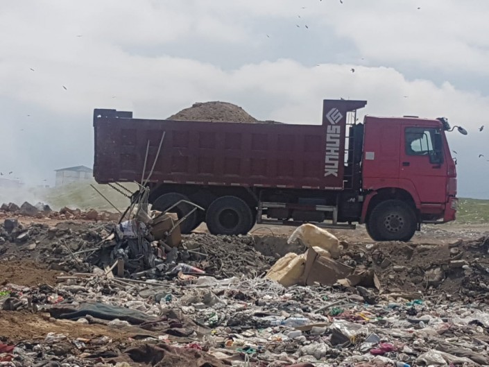 Частный полигон твердых бытовых отходов расположен на территории Алматинской области, в Карасайском районе, в 28 километрах от Алматы, на 2,3 километра севернее автодороги Алматы - Бишкек. Дым от уже потушенного, но еще тлеющего мусора, виден за несколько километров от свалки.
