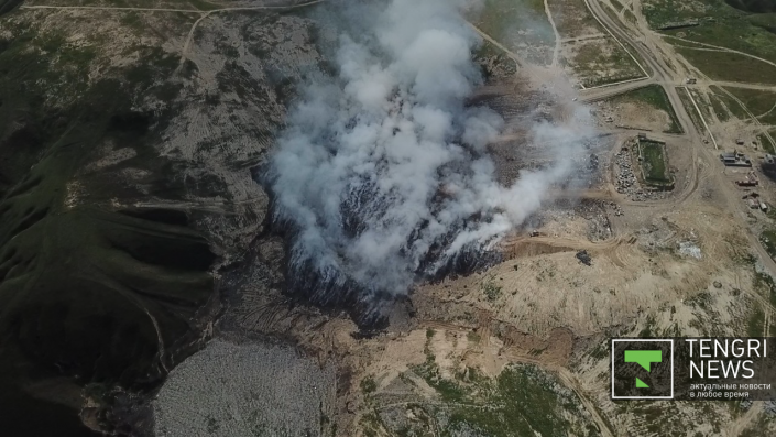 Мусорный полигон, который загорелся близ Алматы, сняли с высоты птичьего полета. Корреспонденты TengriTV побывали на месте и увидели все своими глазами.