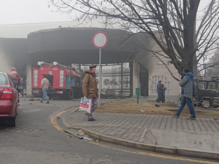 "На моих глазах акимат горел, и на моих глазах спокойно методично разграбляли дворец Президента (резиденцию Президента - прим. автора). Были поломаны ворота в нескольких местах, вокруг валялось очень много резиновых пуль. И спокойно, даже местные жители, как я понял, подъезжали на машинах и выносили ценности из этого дворца. Я так ошарашенно смотрел на это дело, потом у соседа спросил, что происходит, сосед тоже ошарашенно смотрел и говорил: "А ты не видишь, здесь ни одного нет полицейского..." Стрельбы не было. Вот мы постояли около акимата, потом там стали собираться люди, стояли и смотрели, как акимат горит, я говорю: "Почему не тушат?" Там была одна машина пожарная сожженная. Акимат на площади горел очень сильно. Мы постояли, скучковались, начали разговаривать. Потом начались выстрелы со стороны площади, мы сели в машины и разъехались".