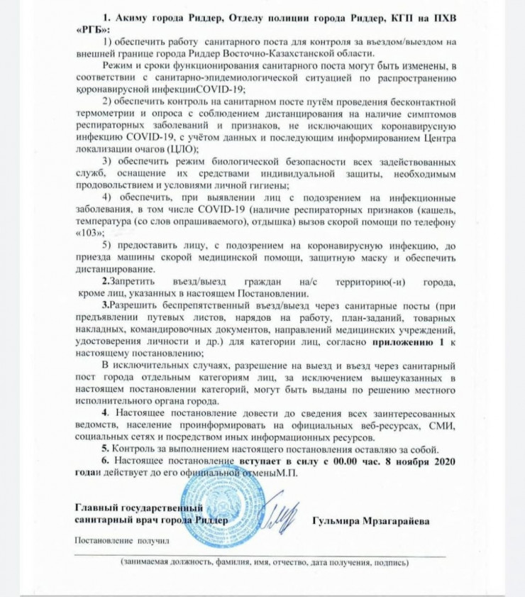 В Восточно-Казахстанской области установили санитарные посты на границах городов Риддер и Серебрянск, а также в поселке Новая Бухтарма, сообщает YK-news.kz.
