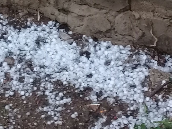 "В одном конце Шахтинска град выпал размером с горошину, а в нашей части города очень крупный, как большая черешня - я всерьез испугалась за машину, которую оставила во дворе, - рассказывает жительница Шахтинска Татьяна Качесова. - Помидоры град повредил, вишню посбивал, кусты картофеля уложил на землю".