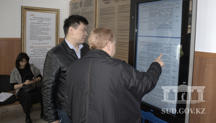 Кроме этого, в Бостандыкском районном суде Алматы появился терминал самообслуживания, на котором можно смотреть график процессов, информационные ролики.
