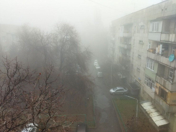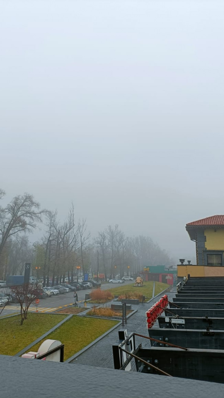 С самого утра видимость на улицах была не больше нескольких сотен метров. Такой "Сайлент Хилл" можно было наблюдать и в ближайших окрестностях города, в районе ЖК "Асыл Арман".
