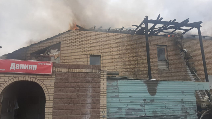 "По прибытии уже в 11.48 открытым пламенем горела кровля, потолочное перекрытие двухэтажного коттеджа, переоборудованного под общежитие (хостел), к нему пристроен магазин, кафе. Предварительная площадь пожара составляет 150 квадратных метров. В ходе тушения пожара спасли мужчину и женщину. Их состояние удовлетворительное", - сообщили в ДЧС.