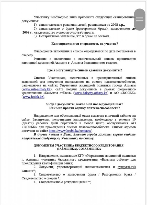 "Подача заявлений и документов осуществляется через портал. Авторизация на портале проходит через электронную цифровую подпись. Ее можно получить в ЦОНе. Жилье участники выбирают самостоятельно, на первичном рынке из вновь введенных в эксплуатацию жилых комплексов", - пояснила автор поста. В опубликованных графиках указано, что и в каком порядке нужно сделать для получения жилья, какие документы нужно собрать и в какие сроки рассматривается заявление.