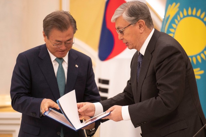 Касым-Жомарт Токаев подарил Мун Чжэ Ину книгу о насильственной депортации корейцев Дальнего Востока в Казахстан в 1937 году.