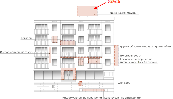 проводят досуг в торговых центрах. Из-за "рекламной анархии" большую часть пространства занимают крупные компании с большими ресурсами. Маленькие бизнесы проигрывают конкуренцию за рекламное место. Если же у всех вывески единообразны внешне и по размеру, все предприятия находятся в равных условиях и имеют шанс привлечь вернувшихся на улицы из торговых центров потенциальных клиентов", - говорится в презентации.