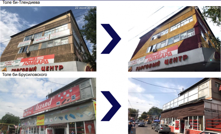 В акимате сообщили, что предварительная работа в Алматы в рамках этих правил уже проведена. Так, совместно с районными акиматами города Алматы с января по сентябрь 2019 года был демонтирован 3521 объект стихийной рекламы. В том числе 1041 объект за последние три месяца. Ниже представлены результаты проведенной работы. Слева вид до работ, а справа вид после демонтажа.