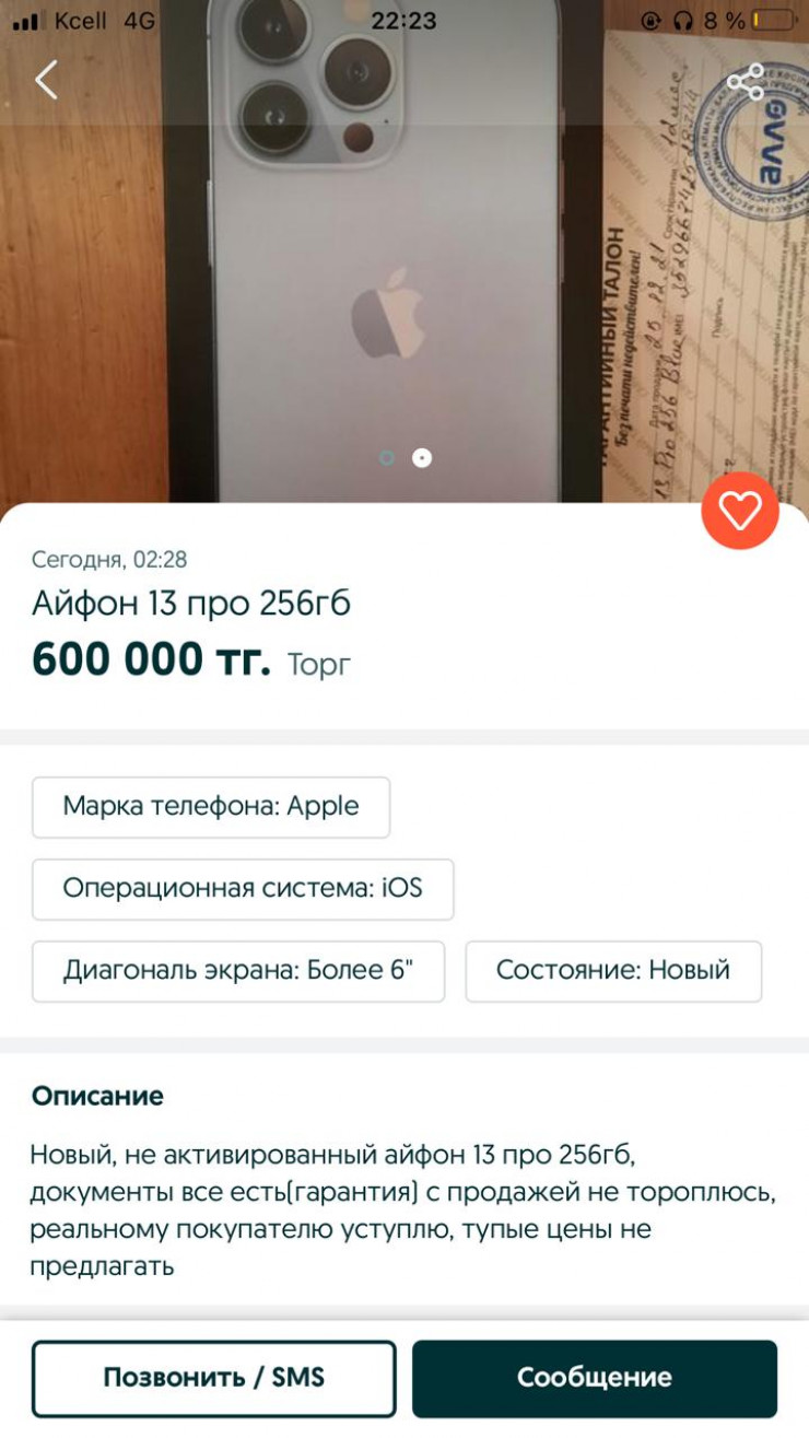 Перед диалогом с адвокатами мы прошлись по сайтам казахстанских объявлений. По всей видимости, вопрос о происхождении товара стал один из самых распространенных. В некоторых объявлениях продавцы сразу указывают дату покупки и уверяют в наличии чека. Другие даже принялись фотографировать вместе с телефоном официальный гарантийный талон.