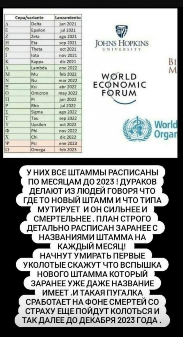 Қазнетте Sars-CoV-2 коронавирусының жаңа нұсқалары пайда болуының фейк "кестесі" қайта тарала бастады. Бұл жолы олар жақында табылған "омикрон" нұсқасы бұрын кестеде болғанына назар аударады. Олардың пікірінше, бұл пандемияның қолдан жасалғанын және жоспарланғанын дәлелдейді.