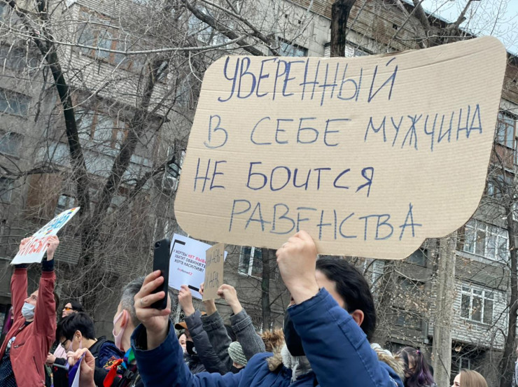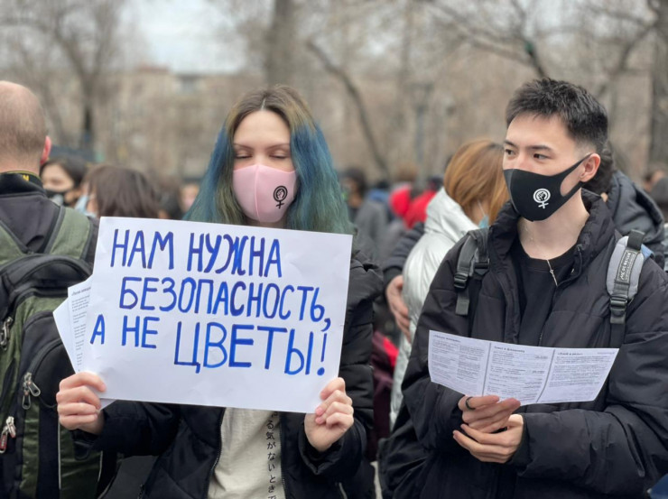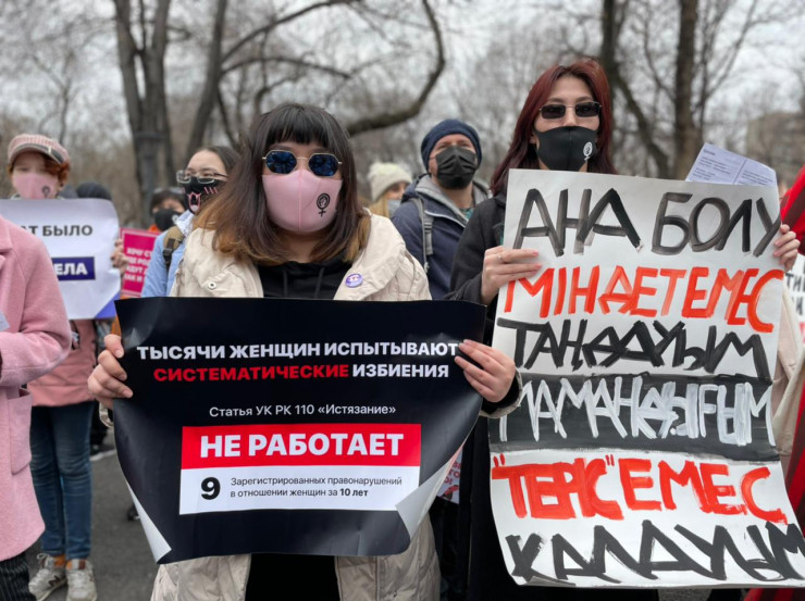 "Женщины в Казахстане должны иметь такие же права, как и все жители страны в соответствии с Конституцией. Сегодня мы говорим, что не потерпим того отношения к женщинам, которое есть в Казахстане. Мы не потерпим насилие, неравную оплату труда и дискриминацию", - заявили активистки.