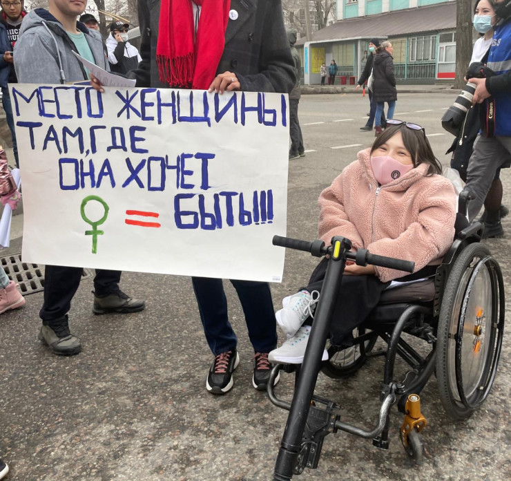 Участницы заявили о себе, о своих проблемах и борьбе за женские права. "Именно женщины в Казахстане выполняют неоплачиваемый труд по уходу за ребенком", - заявили активисты.