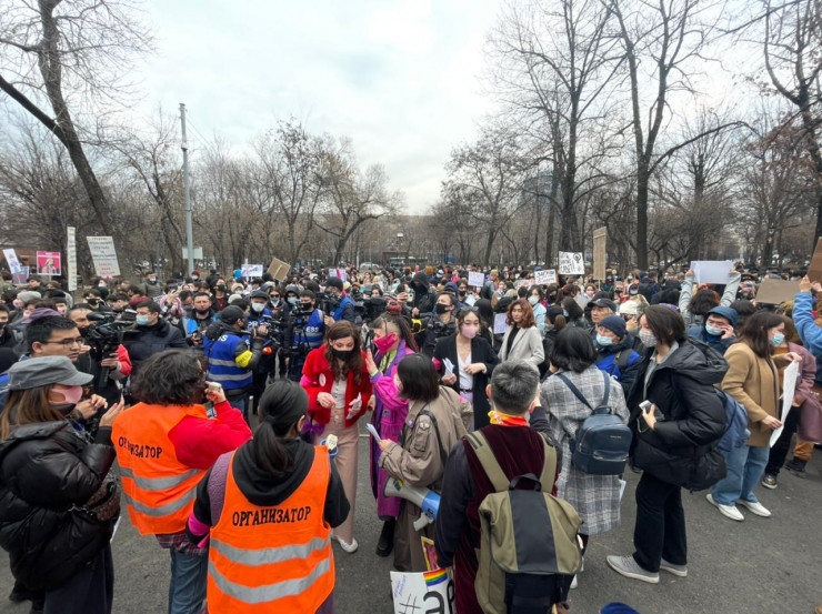 "Хочу напомнить, что наш сегодняшний марш согласован с акиматом Алматы и проходит при его поддержке. Мы вышли сюда законно", - отметила одна из активисток.