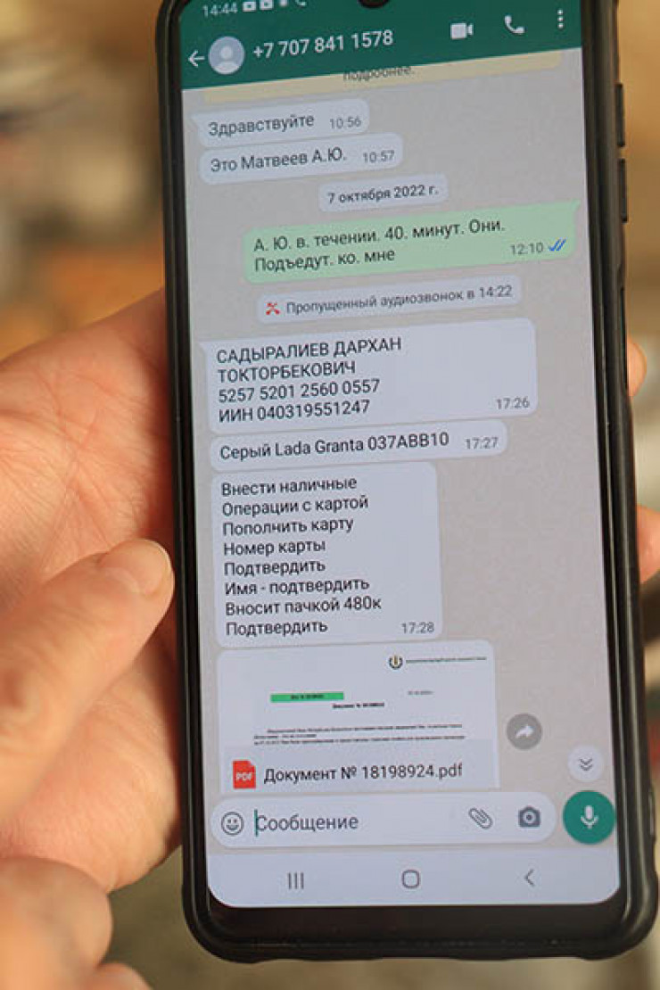 Через некоторое время позвонили с другого номера. Представился Талгатом Жукеновичем из следственного отдела департамента. Говорит: "Мы хотим вам помочь, а вы помогите нам".