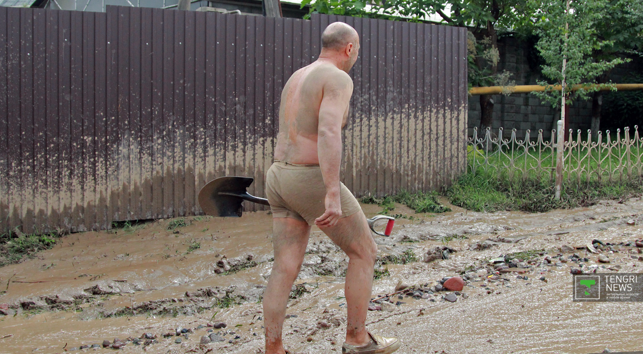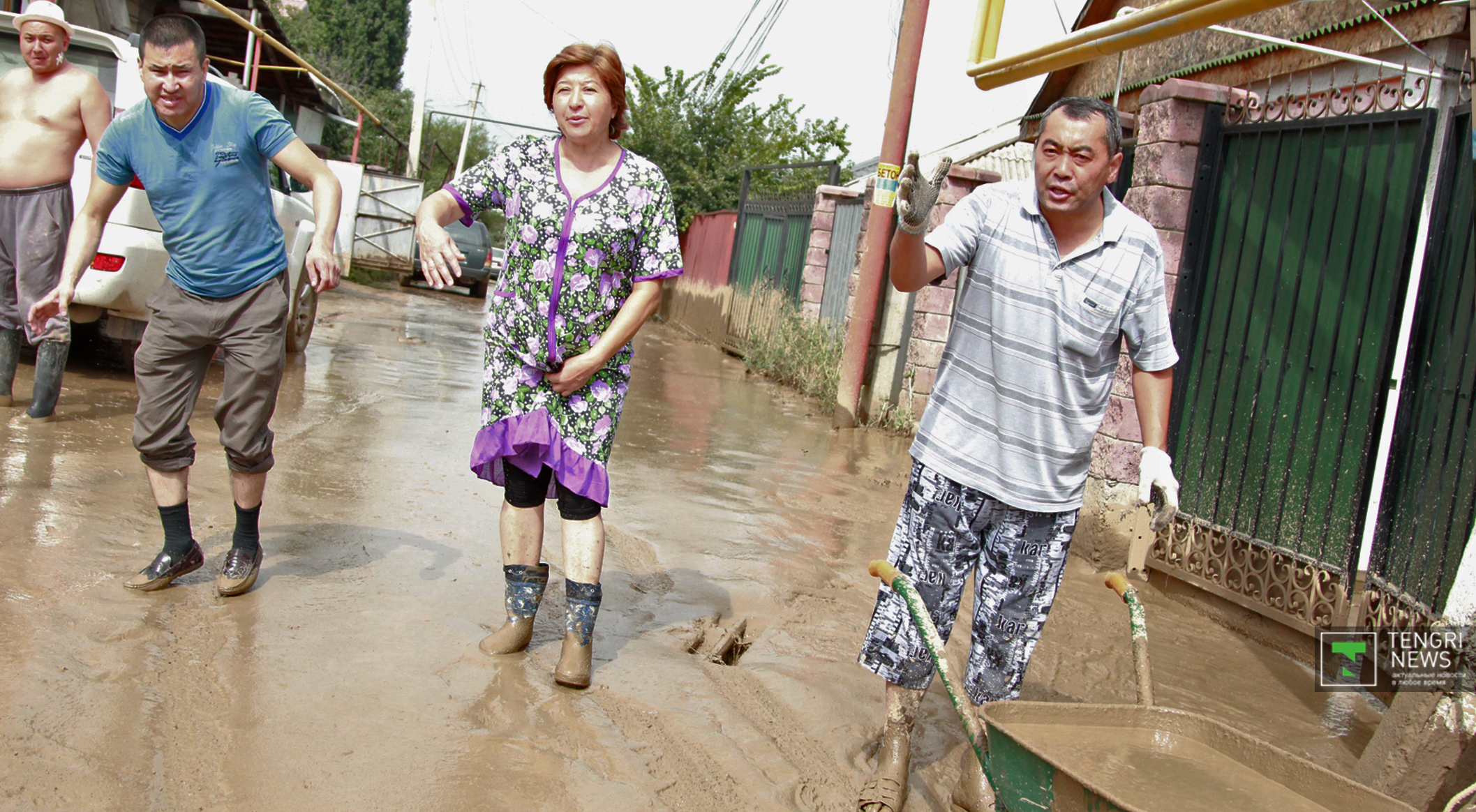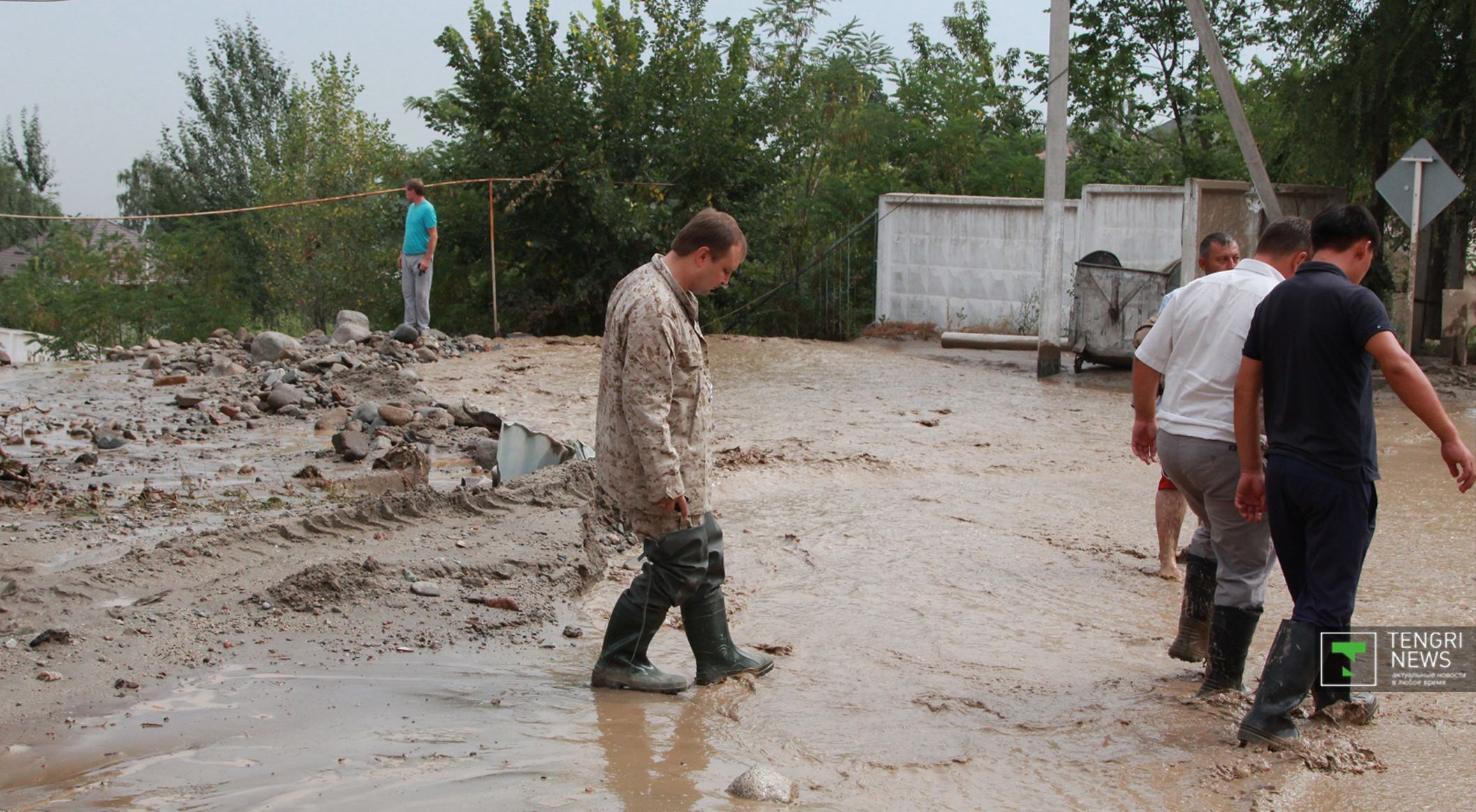 Журналисты Tengrinews.kz подоспели к месту ЧП после рассвета. К тому времени основной поток селя уже спал, и люди начали своими силами восстанавливать порядок. Им помогали подоспевшие на место сотрудники ЧС.