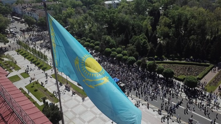 13.55 Вот как выглядело шествие в Алматы с высоты птичьего полета.