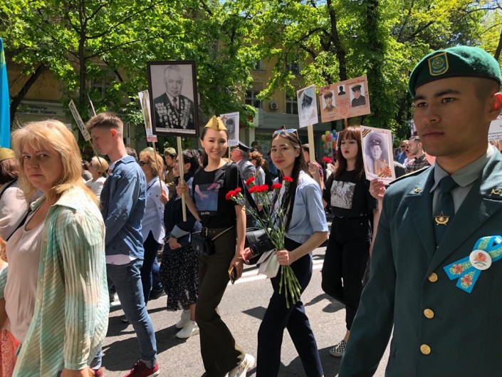 13.00 "Бессмертный полк" в Алматы. Много молодежи.
