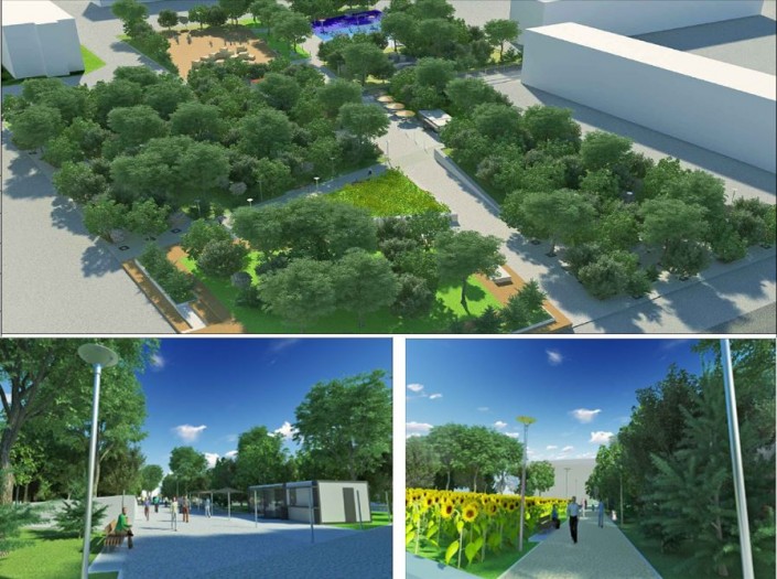 В этом же районе у дома № 23 появится "Математический сквер". По проекту здесь предусмотрен шахматный уголок, "аллея нерешенных задач", "доска синусоида", детская игровая площадка, спортивные тренажеры, стоянка для велосипедистов.