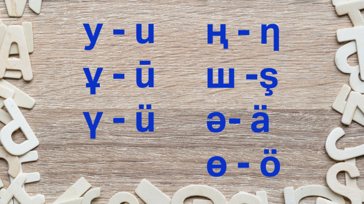 Еще один пункт – это корректировка знаков, обозначающих казахские губные гласные, согласные звуки. В казахском языке звук "у" является согласным, для его обозначения было принято решение взять латинскую букву u. Казахский прикрытый узкий губной гласный звук "ұ" будет обозначаться этой же базовой буквой u, однако черточка, которая в кириллице стоит посередине, перейдет теперь вверх (в лингвистике диакритический знак макрон) - Ū/ū. А для обозначения мягкого звука "ү" будет использована буква u с поставленной сверху диакритикой умляут - ü.