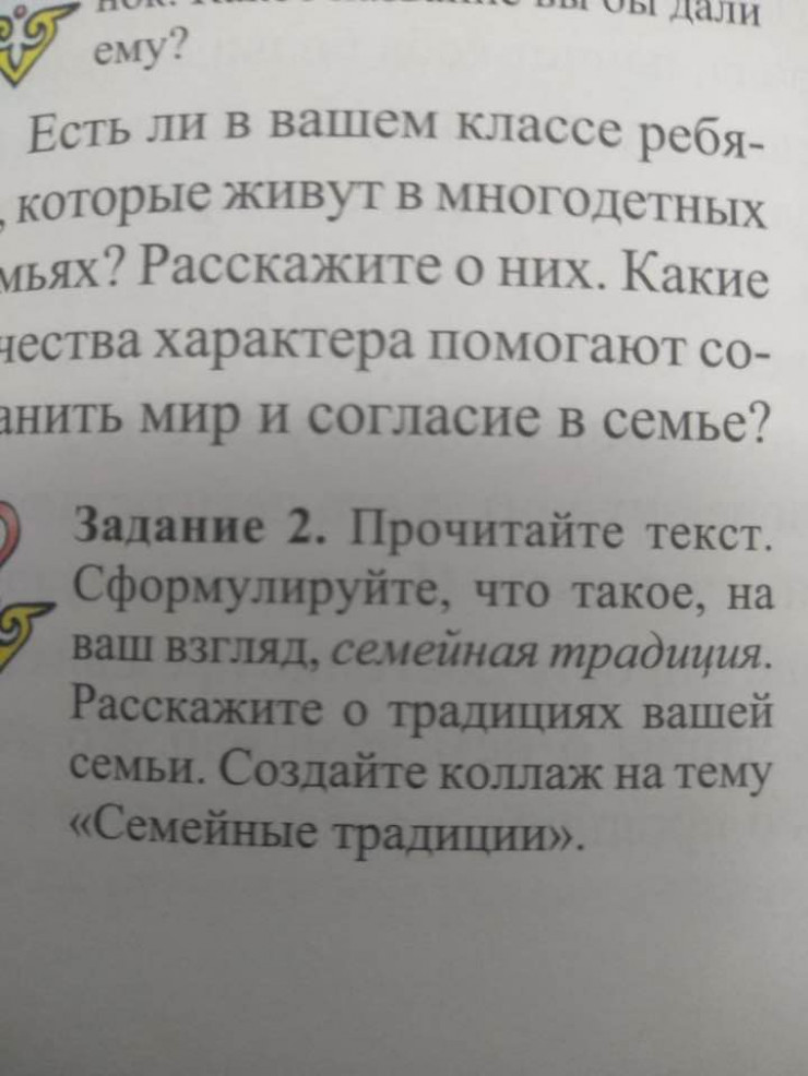 "Есть ли в вашем классе ребята, которые живут в многодетных семьях? Расскажите о них. Какие качества характера помогают сохранить мир и согласие в семье?" - гласит задание.