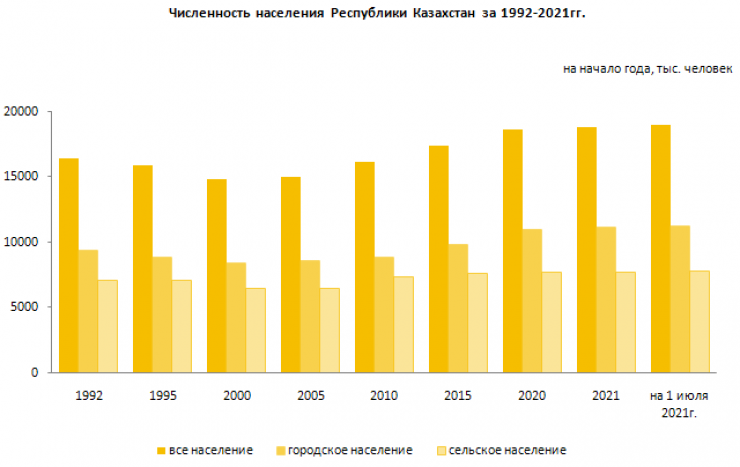 В целом за годы независимости численность населения увеличилась на 2 миллиона 557 тысяч человек (на 15,5 процента) и на 1 июля текущего года составила 19 миллионов 9,6 тысячи человек", - сообщили в Бюро статистики.