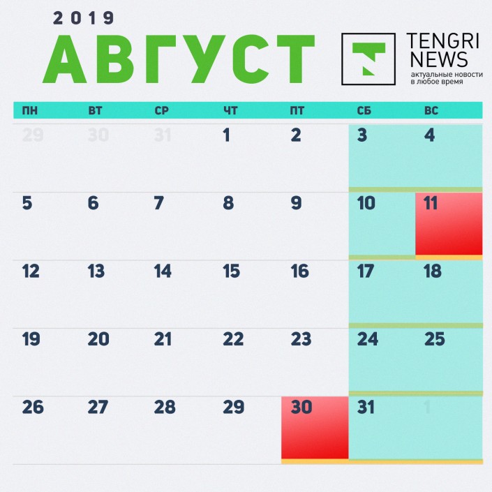 В августе казахстанцев ожидает 21 рабочий день, передает Tengrinews.kz.