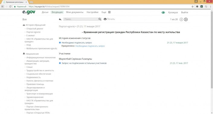 После этого собственник получит новое сообщение в своем личном кабинете с темой "Временная регистрация граждан Республики Казахстан".