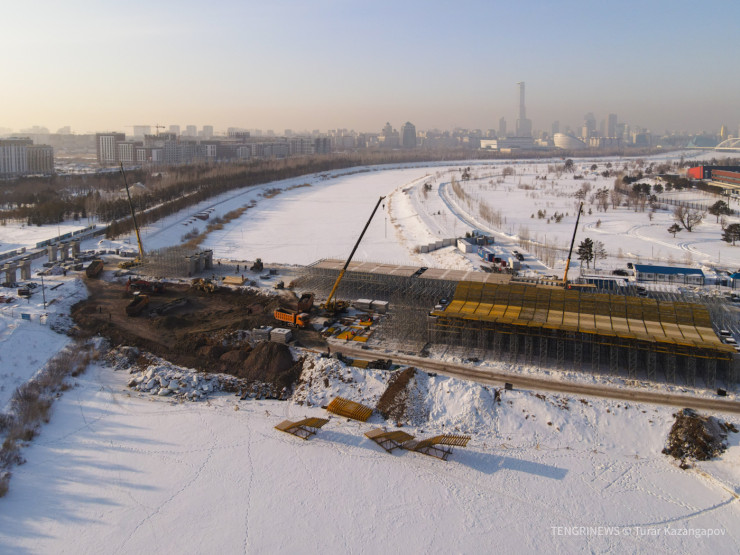 Как выглядит строительство нового моста в Астане Фото: Турар Казангапов/Tengrinews