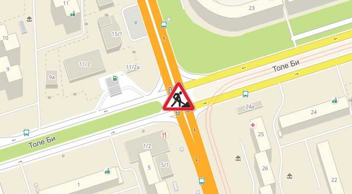 • с 21 по 23 июля - пересечение улиц Момышулы и Толе би. Меняется схема движения следующих автобусов: